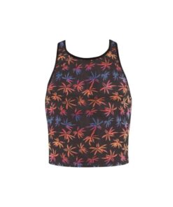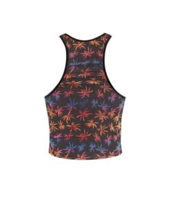 Weicher schwarzer Tüll mit buntem Print, Feiertagspalmen