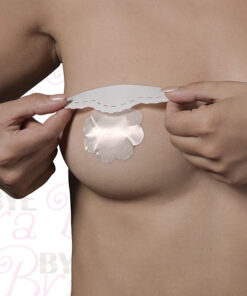 Das Bye-Bra-Tape sorgt außerdem dafür, dass die Brüste an Ort und Stelle bleiben. Während sie sich unter Textilien weiterhin frei bewegen können, dämpft das Bye Bra-Band jede übermäßige natürliche Bewegung der Brüste. Der Bye Bra wird mit Brustwarzenabdeckungen aus Seide geliefert. Sie fragen sich vielleicht, warum wir zwei Arten von Brustwarzenabdeckungen anbieten. Das liegt daran, dass jede Brust anders ist. Jede Frau ist einzigartig.