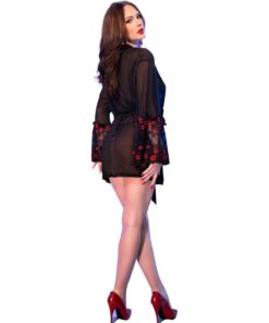 Mit diesem Babydoll CR 4882 lassen Sie Ihre Silhouette für sich sprechen. Der verführerische Morgenmantel hüllt den Körper in weichen, transparenten Mesh, der gerade genug preisgibt, um die Fantasie anzuregen. Die weiten Ärmel, verziert mit Spitze und leidenschaftlichen roten Küssen, verleihen dem Kleid eine verspielte und provokante Note wie ein Versprechen dessen, was als Nächstes kommt. Der Taillengürtel sorgt für eine perfekte Passform und betont die Kurven, während der passende String den verführerischen Look abrundet.