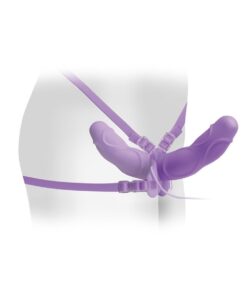 Verdoppeln Sie Ihr Vergnügen und den Spaß mit diesem unglaublichen Strap-On mit zwei Enden. Ein Ende des Silikondildos stimuliert den Träger, während das andere Ende Ihrem Partner gefällt. Beide Silikonschäfte sind geschickt gebogen, um die richtigen Stellen zu treffen. Wählen Sie eine Geschwindigkeit, die für Sie beide richtig ist, und lassen Sie sich von den starken Vibrationen entführen. Sieben aufregende Pulsationsmuster reizen und erfreuen Ihre Sinne, während der bequeme Silikongurt an Ort und Stelle bleibt, wenn sich die Action erwärmt.