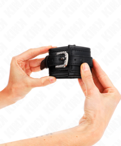 KINK – HANDGELENKFESSELN MIT STRASS-SCHNALLE, SCHWARZ, VERSTELLBAR 25-32 CM X 5,5 CM