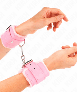 KINK – PELZGEFÜTTERTE HANDGELENKFESSELN ROSA MIT ROSA GÜRTEL VERSTELLBAR 17-29 CM X 6 CM