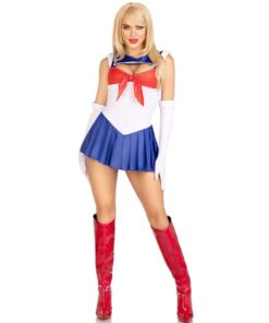 Entfesseln Sie Ihre innere Cartoon-Diva mit diesem von der Popkultur inspirierten 3-teiligen Sexy Sailor-Set! Dieser freche Bodysuit mit Druckknopfverschluss ist ideal für Halloween oder Karneval und wird durch ein kokettes, ausgeschnittenes Mieder und einen verspielten Faltenrock hervorgehoben.