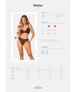 Verführerisch durch einen femininen Schnitt und entzückend durch ein einzigartiges Muster aus weichen Materialien das Natilya-Set ist ein äußerst sexy und klassisches Angebot. Der BH mit dreieckigem Körbchen sorgt für vollen Komfort, und das Höschen mit einem sinnlichen Schnitt am Gesäß regt die Fantasie an und regt dazu an, herrliche Momente im Schlafzimmer zu erleben. Überzeugen Sie sich selbst und Sie werden es nicht bereuen!