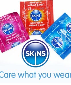 Bringen Sie Abwechslung in Ihr Sexleben und bleiben Sie geschützt mit den Skins Kondom-Sortimenten. 4 einzelne Kondome in 3 aufregenden Varianten. Jede Packung enthält eine Mischung aus natürlichen, genoppten, gerippten und ultradünnen Kondomen. So können Sie mit dieser Auswahl an Skins-Favoriten verschiedene Lustabenteuer erleben.