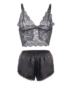 SUBBLIME – 953928 NACHTHEMD + HÖSCHEN AUS SEIDE UND SPITZE SCHWARZ L/XL
