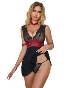 SUBBLIME – 954420 BONDAGE-KLEID AUS SPITZE SCHWARZ S/M