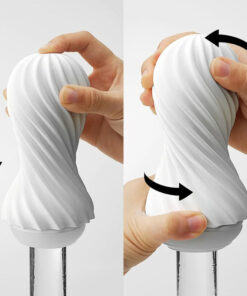 Der TENGA FLEX dreht sich, saugt und schmiegt sich mit seiner einzigartigen spiralförmig gerillten Schale an.