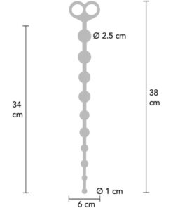 Mit einer Länge von 34 cm und einem Durchmesser von 1 bis 2,5 cm sorgen diese Perlen für intensive Empfindungen. Ihre glatte Oberfläche und die progressive Größe gewährleisten ein angenehmes Einführen und maximales Vergnügen.